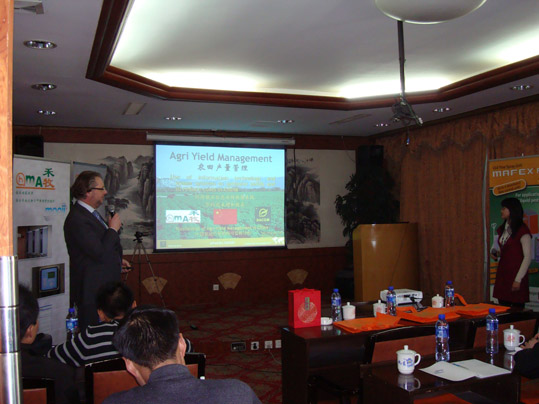 會議主要由荷蘭牧易農業(yè)有限公司董事Maarten Mooij主講,業(yè)務經理馮彥博翻譯,北京禾牧農業(yè)新技術有限公司安排會務。會上有幸邀請到了百事食品(中國)有限公司、麥肯食品(哈爾濱)有限公司、北京辛普勞食品有限公司、藍頓旭美食品有限公司等14家國內馬鈴薯行業(yè)的42名專業(yè)技術人才以及荷蘭O&P公司技術工程師Reindert Jan Goetheer 參加培訓。會上Maarten Mooij講解了Rainbow 系統(tǒng)的操作要領、注意事項以及設置參數,倉儲控制系統(tǒng)的理論知識,還一起和所有參會人員討論了馬鈴薯倉儲中遇到的疑難問題。Reindert Jan Goetheer以弘基農業(yè)科技開發(fā)有限責任公司裝出倉機為例,親自講解了它們的工作性能,每位在場的培訓人員都非常認真的聽取并討論了所有知識和問題。